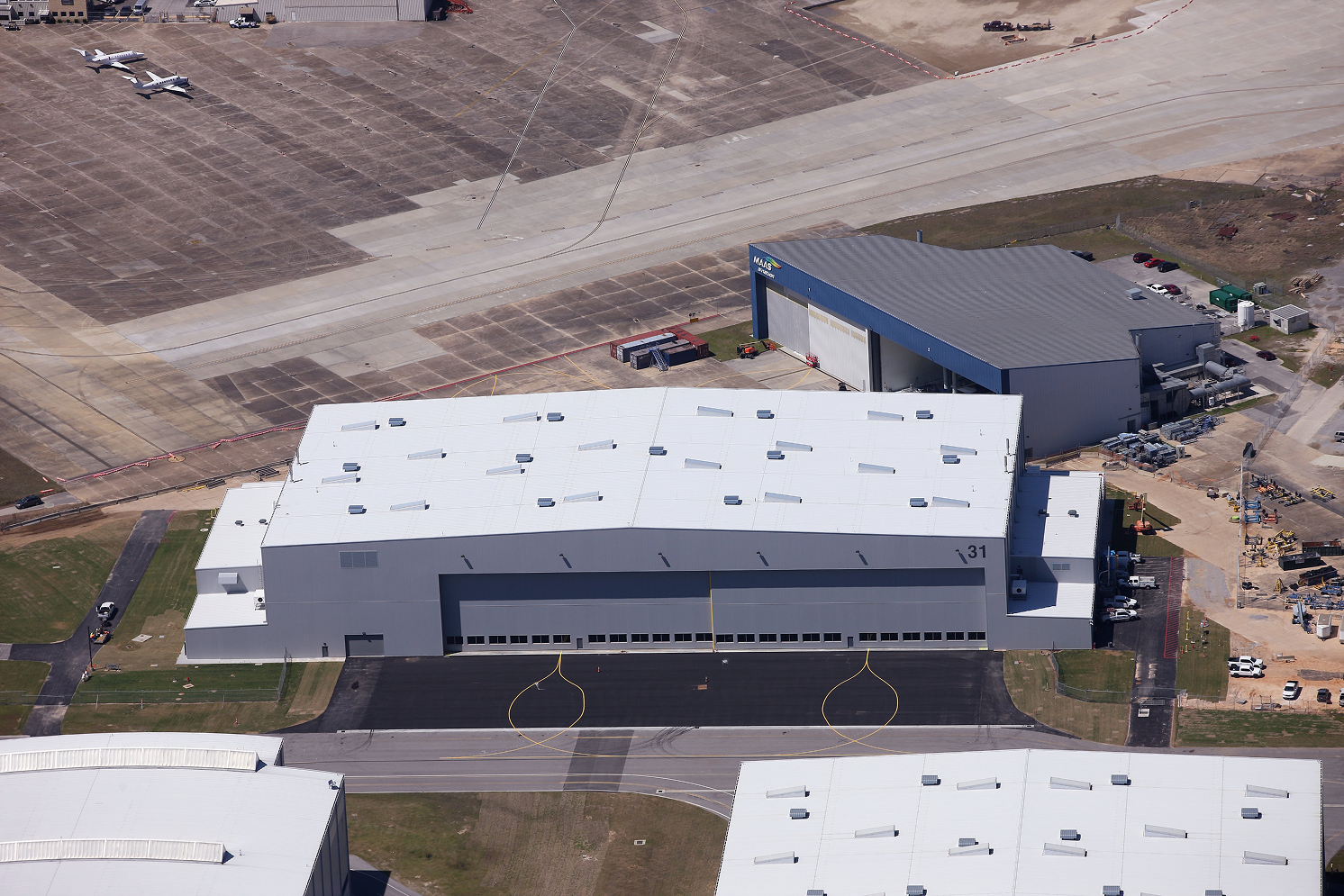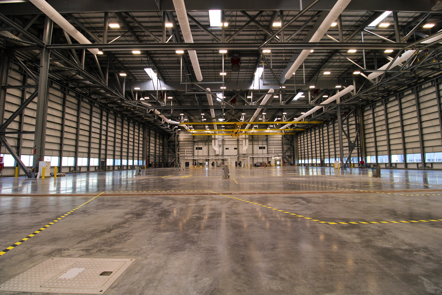 One of the most complex challenges was coordinating the installation of 24 service pits. These pits are critical components that supply power, compressed air, and vacuum essential to aircraft assembly operations.