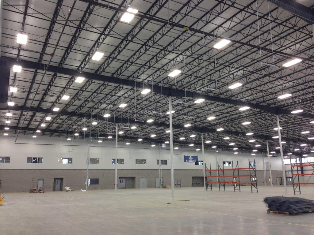 The scope of work included extensive site development, asphalt and concrete paving, and the installation of a dedicated fire pump and pump house. The structure features robust 6″, 8″, and 12″ thick floor slabs to support heavy equipment and manufacturing processes.